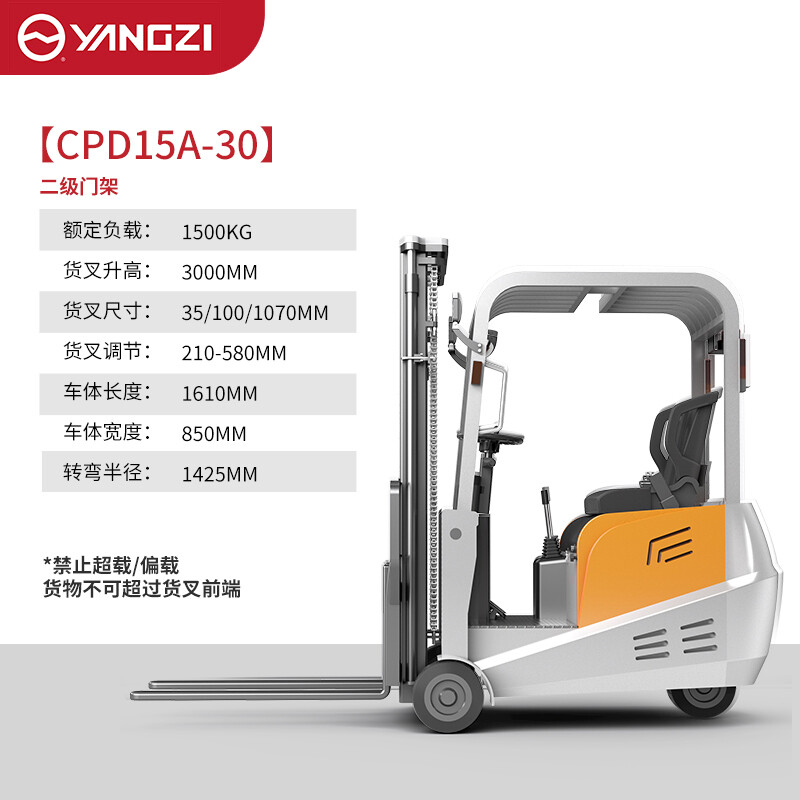 揚(yáng)子三支點(diǎn)座駕式平衡重電動(dòng)叉車(chē)CPD-A,動(dòng)力強(qiáng)能耗低免維護(hù)低噪音,車(chē)身小巧/全車(chē)LED警示燈/制動(dòng)雙保險(xiǎn)
