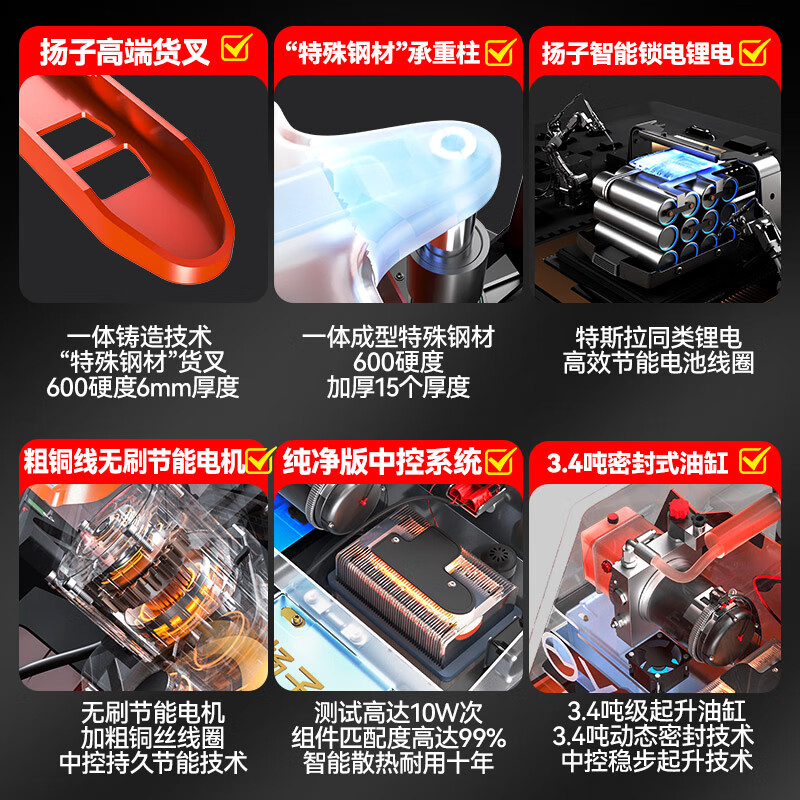 人體工程學(xué)控制手柄,全新升級加大加厚鋼材,揚子自研品牌鋰電池