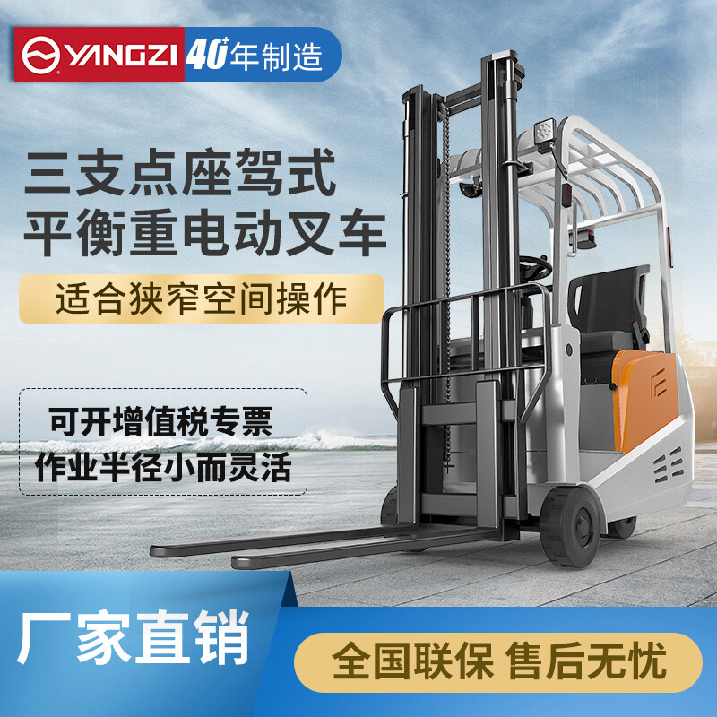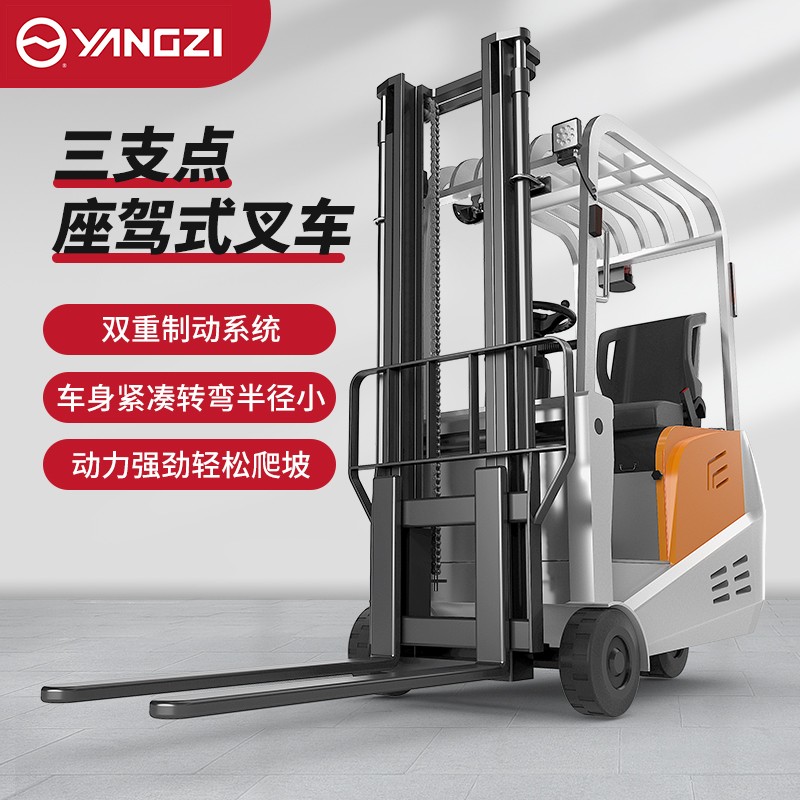 揚(yáng)子三支點(diǎn)座駕式平衡重電動(dòng)叉車(chē)CPD-A,動(dòng)力強(qiáng)能耗低免維護(hù)低噪音,車(chē)身小巧/全車(chē)LED警示燈/制動(dòng)雙保險(xiǎn)