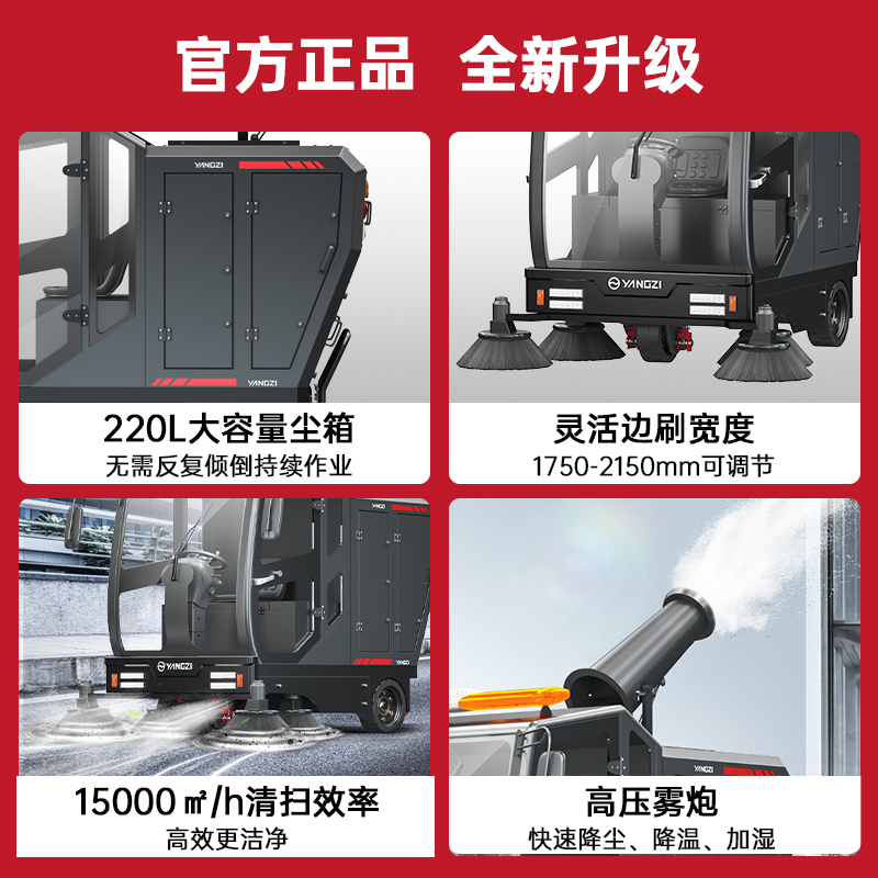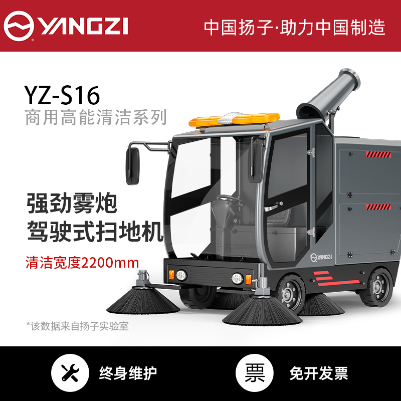 揚(yáng)子掃地機(jī)YZ-S16,全封閉清掃車,強(qiáng)效清掃,省時省力,掃吸二合一 /無水珠全程霧引/輕松爬坡/簡易控制面板/強(qiáng)勁電機(jī)/LED大燈